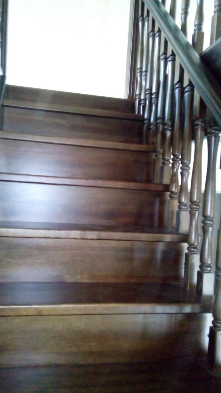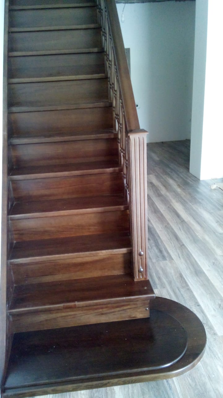 Отделка деревянных лестниц– конечный и очень важный этап всего процесса изготовления лестницы, который проходит непосредственно перед монтажом. Сейчас на рынке отделочных и лакокрасочных материалов огромный выбор , и неспециалисту очень сложно ориентироваться среди производителей и поставщиков, понимать преимущества и реальные показатели того или иного лака. Компания «КРОНА» используют трехкомпонентный полиуретановый лак ч максимальной износостойкостью, в зависимости от дизайна помещения в шелковисто-матовом либо глянцевом решении. В случае, если есть решение придать сосновой лестнице более помпезный оттенок красного африканского дерева, либо есть желание получить лестницу из лиственницы под естественный цвет дуба, мы используем несколько типов тонирующих средств – спиртовые морилки отечественного происхождения либо тонировки бейцем европейских производителей. Профессиональная покрасочная камера с водяной завесой и многоуровневой очисткой воздуха позволяет получить поверхность изделий на уровне европейских стандартов.
