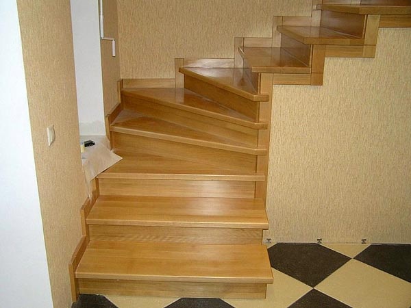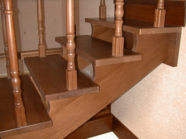 В случае винтовой лестницы или комбинированной в марше и сегмента забега, заказчику следует помнить о максимальной нагрузке на одну ступень и на лестницу в целом. Самые прочные и устойчивые к нагрузкам будут лестницы из дуба, если это лиственная порода дерева, или из лиственницы, если выбран хвойный вариант деталей. В месте прихода тетивы к перекрытию применяется специальный крепеж анкерного типа, с переходными элементами стального крепежа, либо, если того требует скрупулезный подход к общему дизайну внутреннего пространства дома или квартиры, предварительно устанавливается «лобная» доска в торец перекрытия, а к ней уже крепятся тетивы или косоуры.