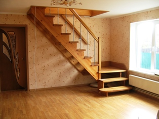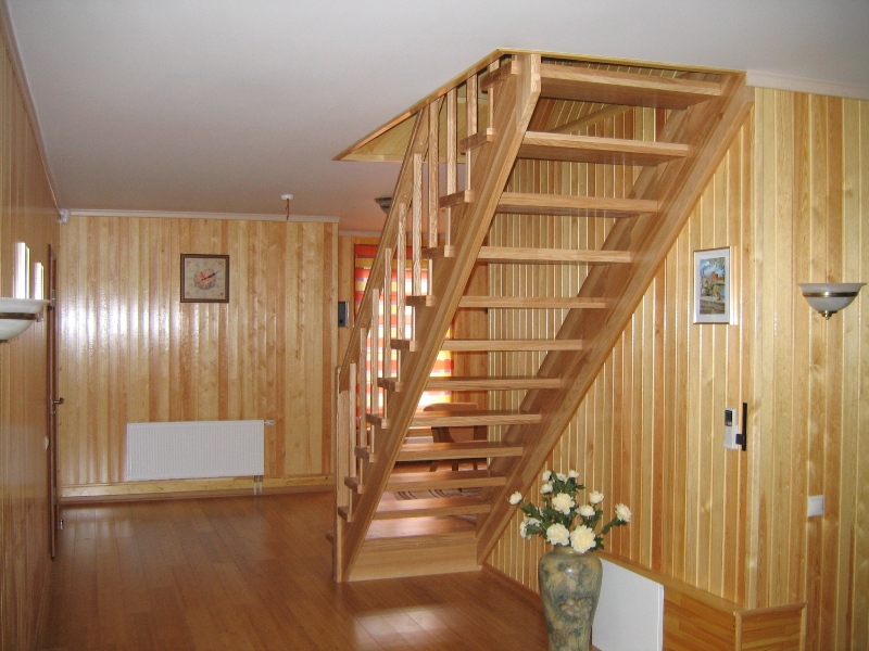 Для изготовления деревянной лестницы применяется древесина хвойных и лиственных пород, в зависимости от предпочтения заказчика и предназначения ее в целом. Для наружной лестницы из сосны или, что более предпочтительно, лиственницы, применяется пиломатериал высшего качества , называемым среди профессионалов бессучковой нулевкой, с влажностью 12-14%. Для внутренних лестниц берется материал с более низким показателем влажности в 6-8%. Приступать к изготовлению и далее установке лестницы на второй этаж следует только после того, как дом дал усадку, т.е. после 3-4х лет после постройки самого дома.