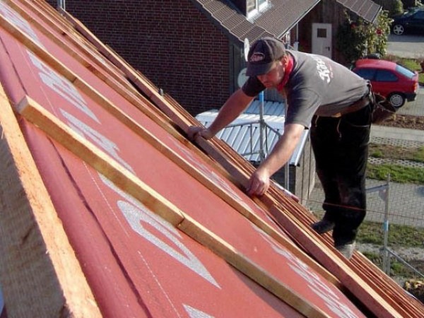 Фиксировать данный слой можно при помощи контовочной рейки. При укладке гидробарьера и утеплителя оставьте небольшой зазор, который обеспечит необходимую вентиляцию.